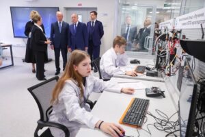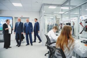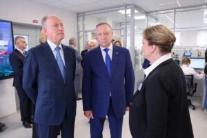 Николай Платонович Патрушев и Александр Дмитриевич Беглов прошли по нашим лабораториям, пообщались со студентами и мастерами производственного обучения.