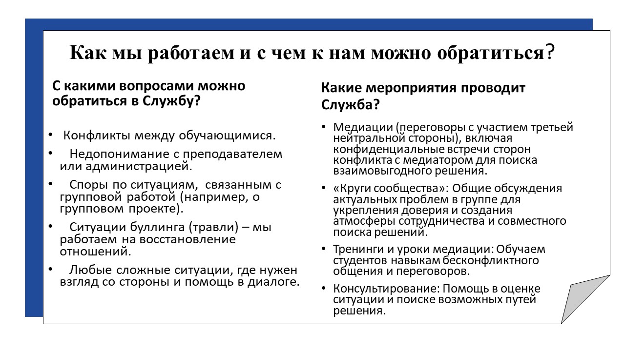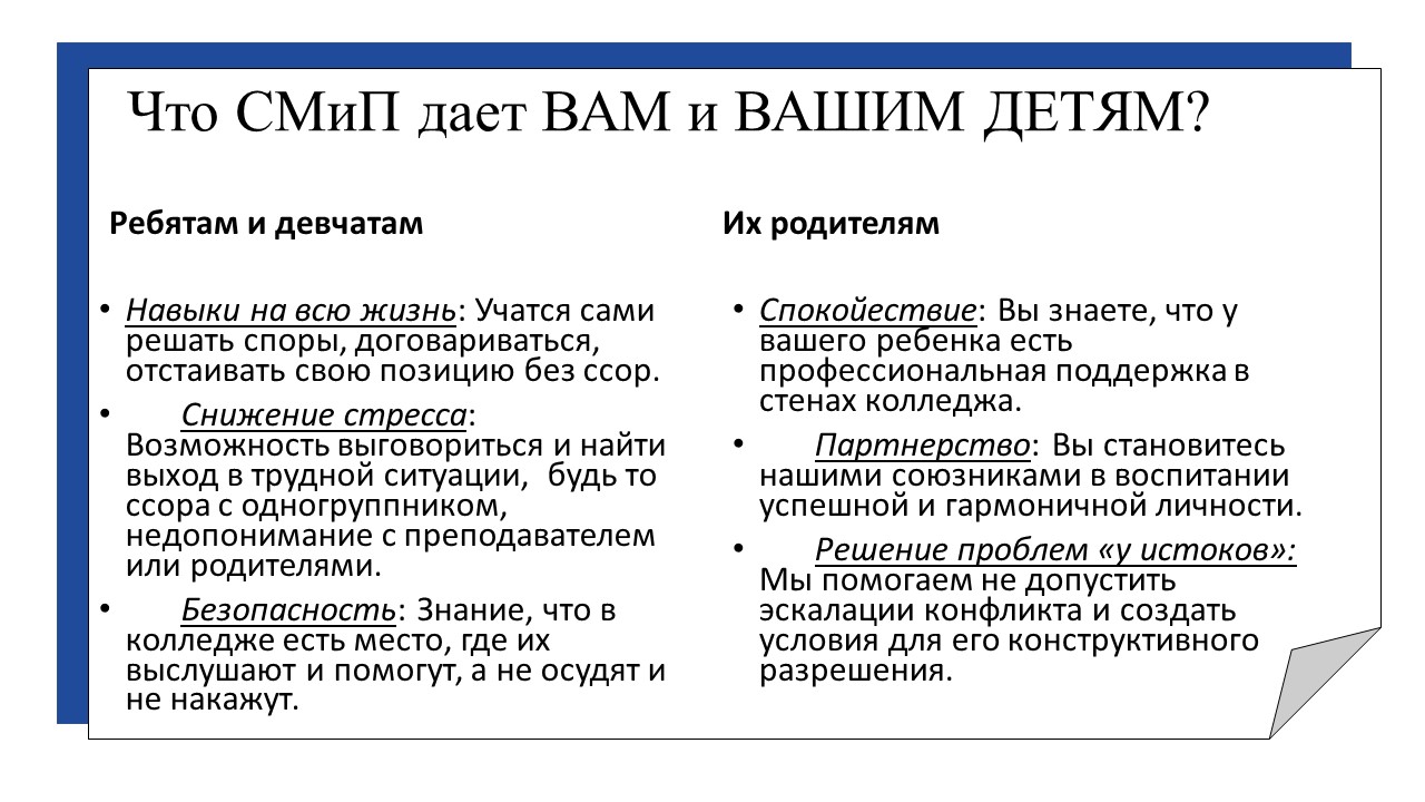 Контактная информация: кабинет службы медиации и примирения, Кронштадтская д.5, e-mail koroleva@ksipt.ru